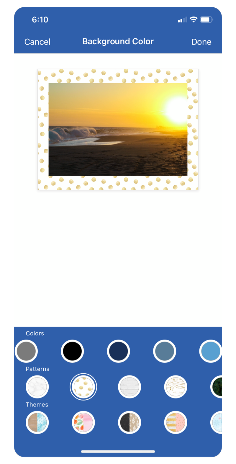 Page background option comes in varieties of colors, patterns and themes
