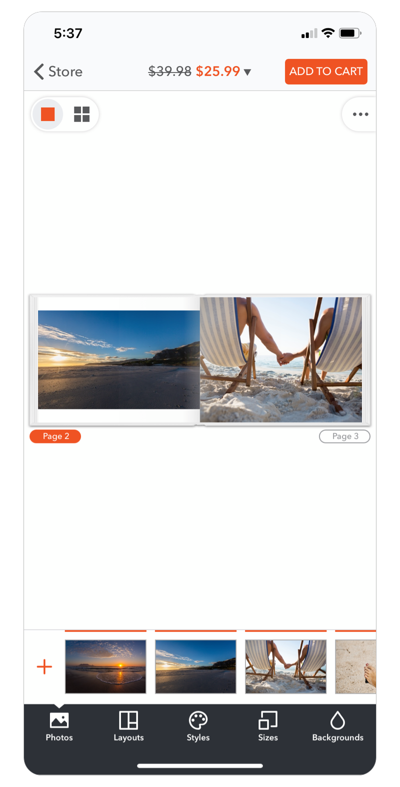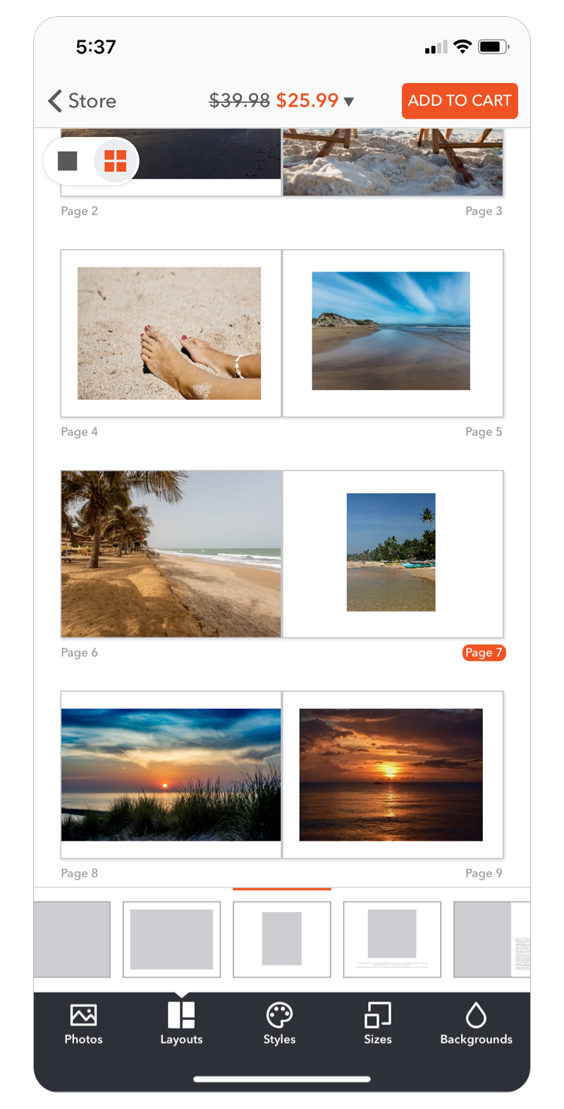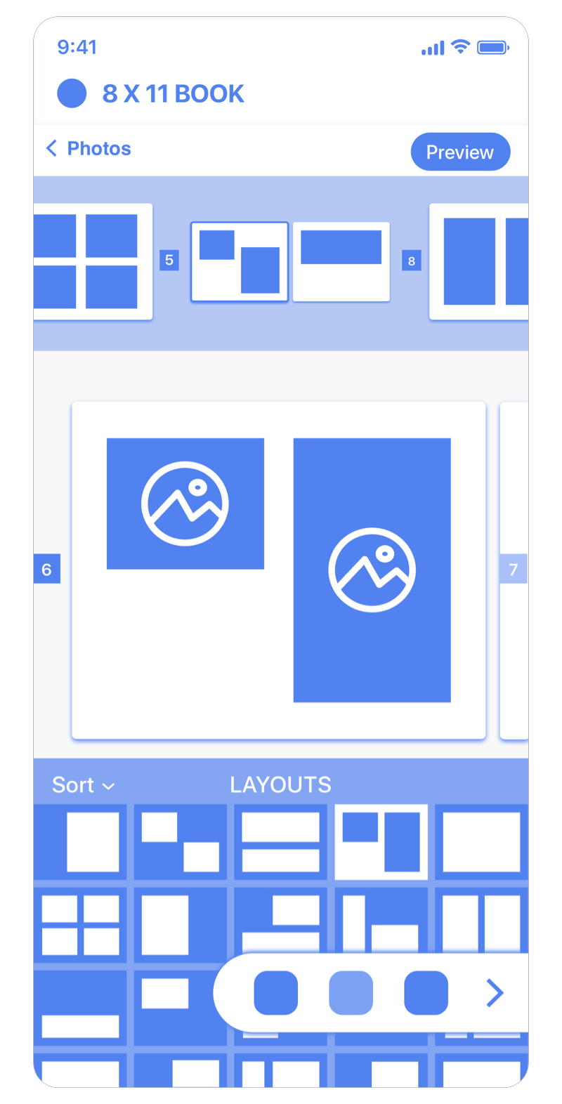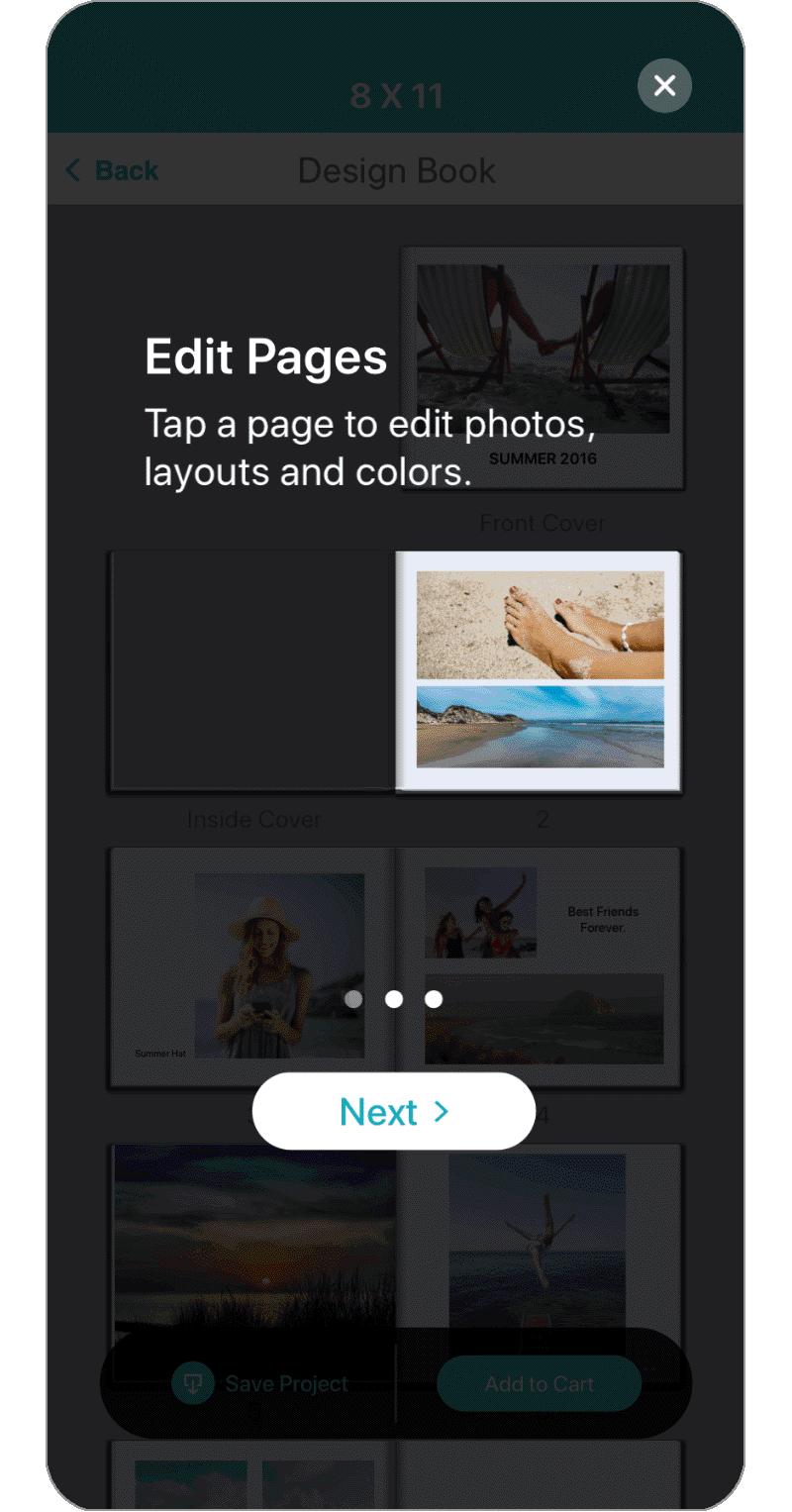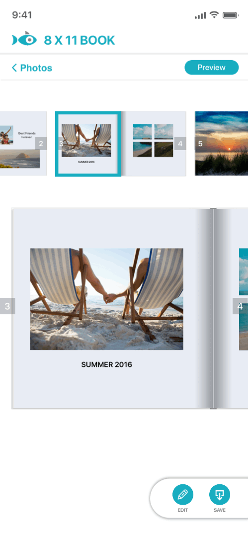 As I've mentioned with design transition between pages, this allows the user to review their photo book in full view.