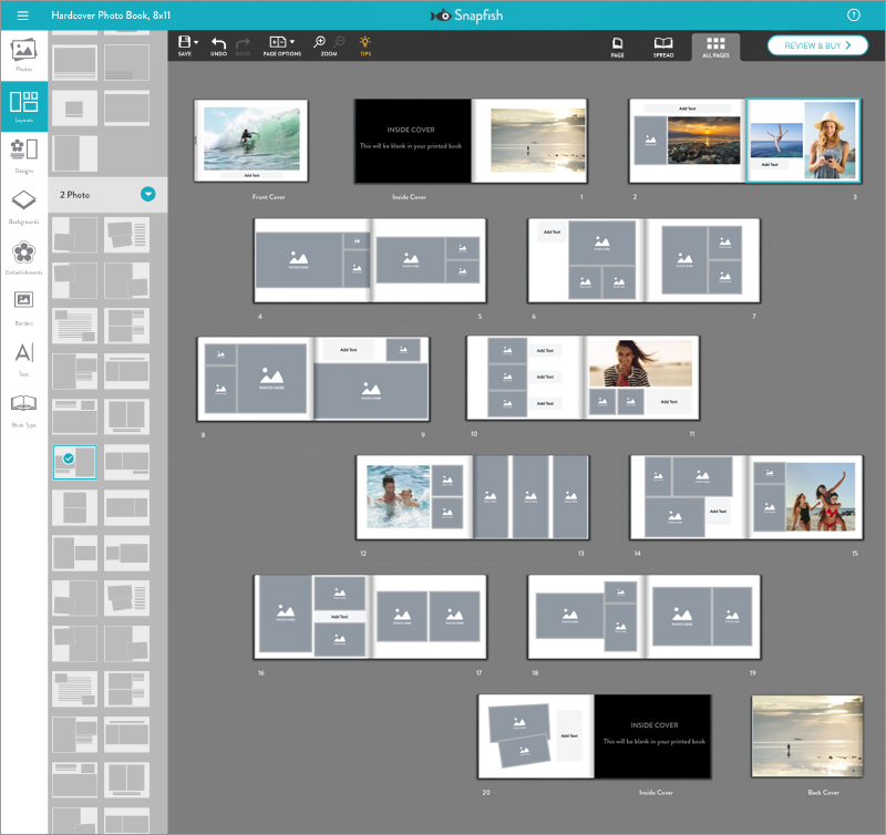 The 20 photos in the order they were selected are prepopulated on the pages of the book.