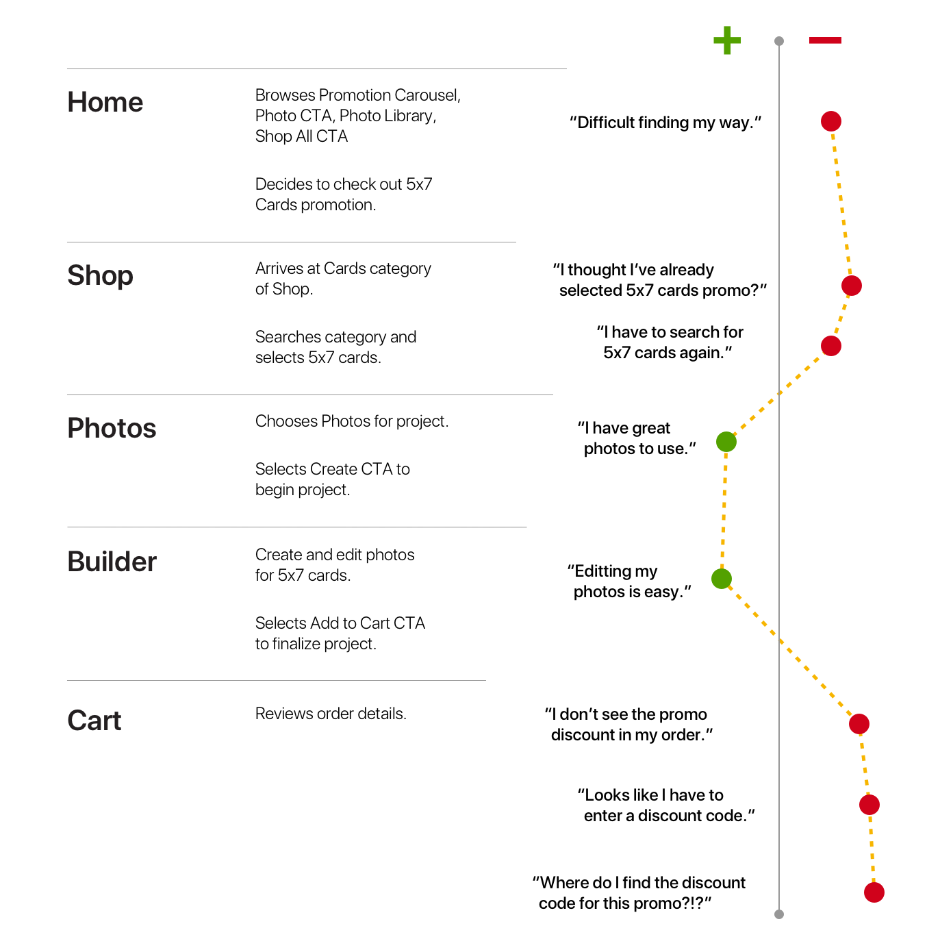 I mapped out my shop experience, detailed task and results along with emotions felt.