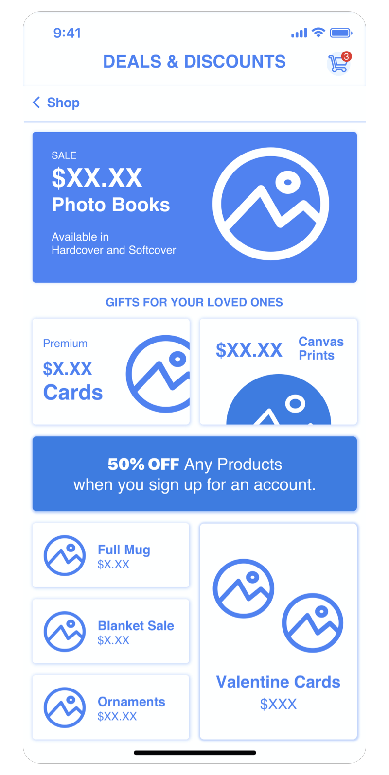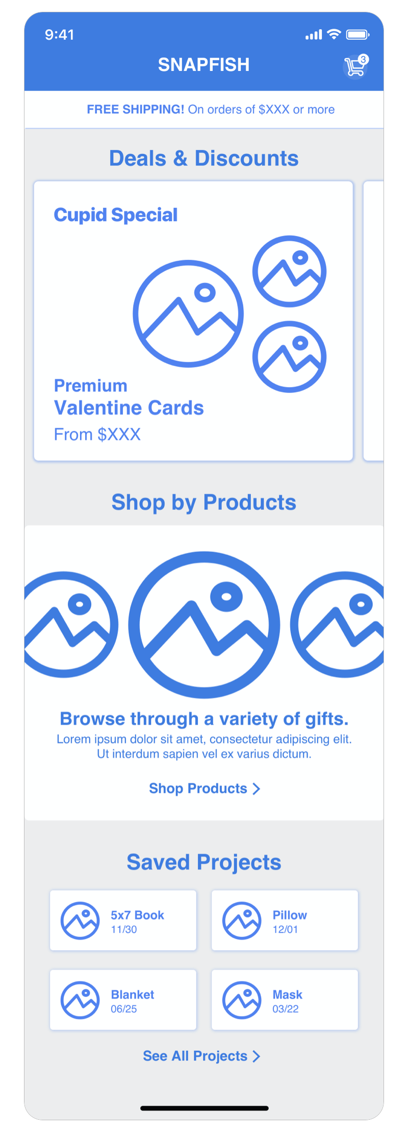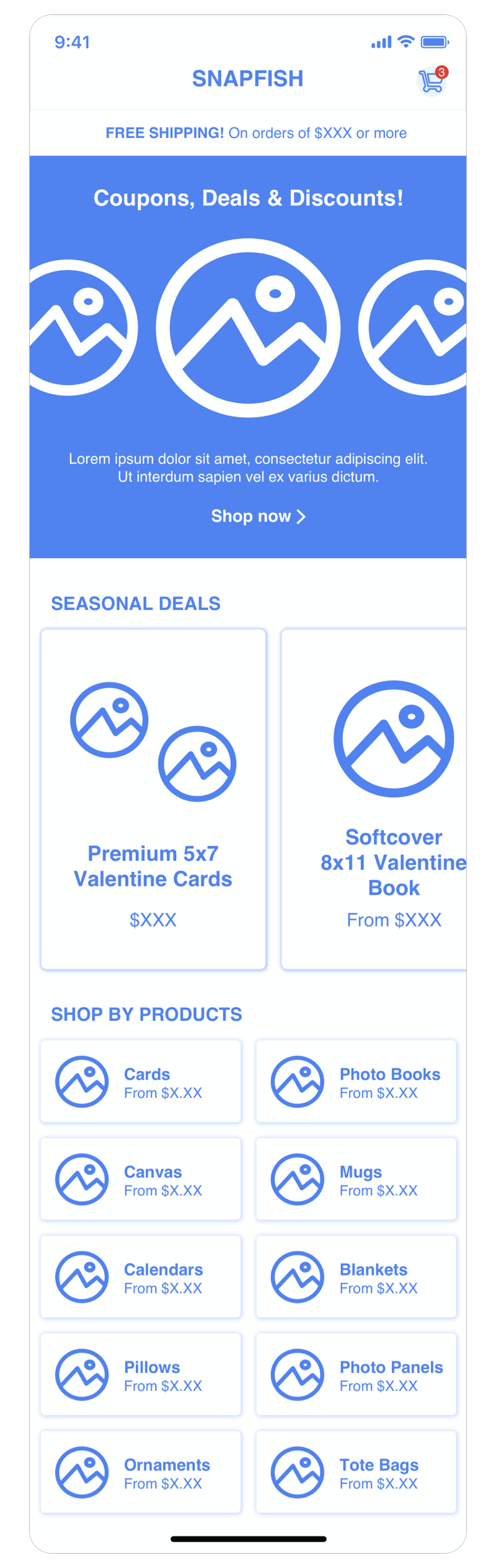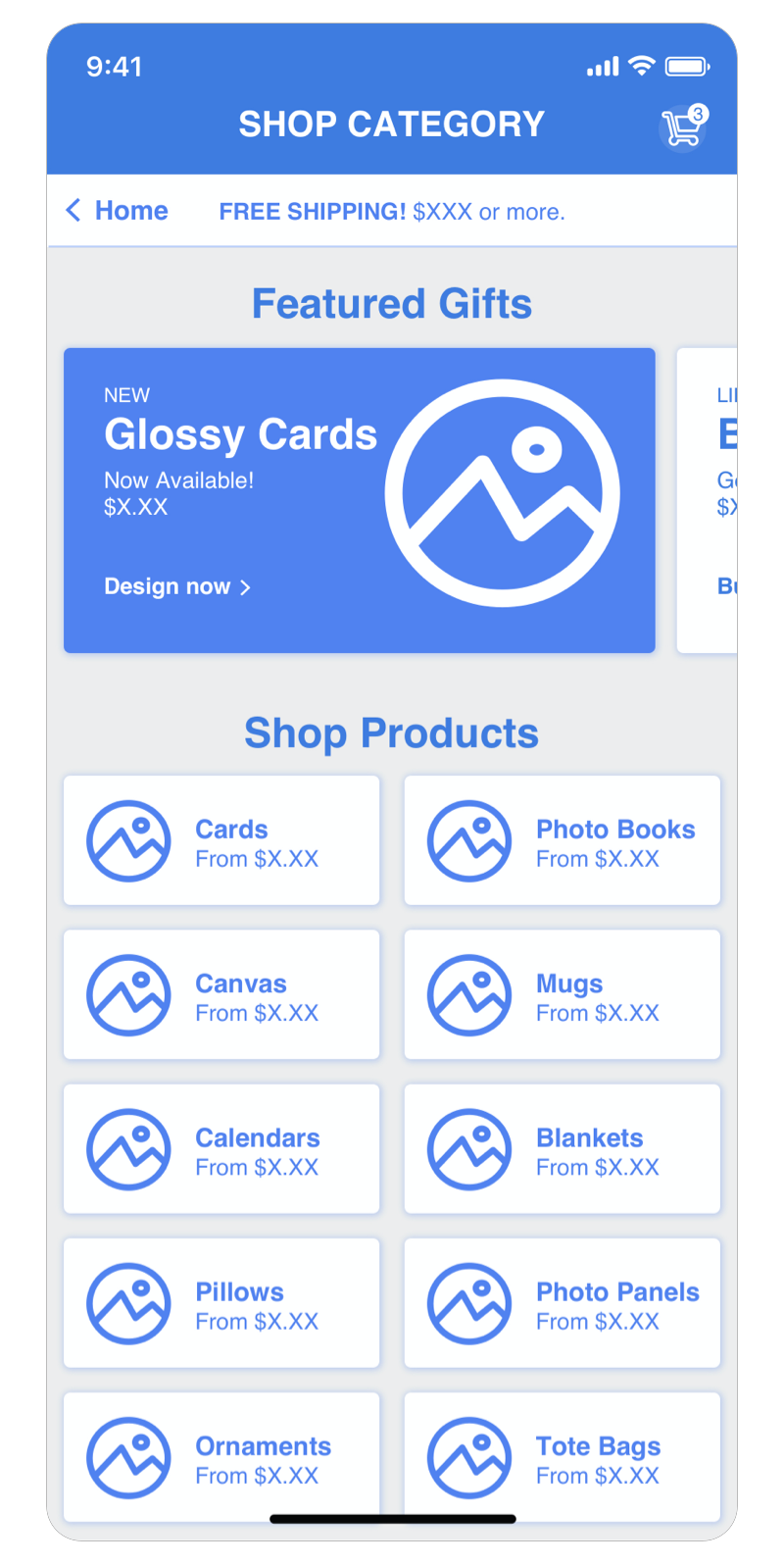 This approach focuses more on each shop category and utilizes the home screen as a place to access these categories.